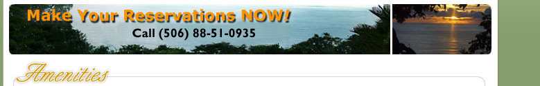 The house features three elegant suites plus the master studio and five total bathrooms, perfect for your family vacations to Costa Rica or just a weekend fishing getaway to the Pacific. Two of the three suites include two queen size beds and full private baths with sunken tubs. One of the Queen Suites features great views of the Manuel Antonio beach and boasts its own large terrace complete with lounge chairs and tables, while the other suite has a wonderful view of the rainforest and jungle, where you are sure to have a monkey visit every morning! Casa Carolina´s Master Suite, on the second level of this magnificent vacation rental home features a king size bed, full private bath, jacuzzi tub and a large fully-furnished veranda overlooking the sea. The Master Studio has it´s own separate entrance via the front terrace and is perfect for added privacy . It is equipped with a full kitchen, bathroom, living/dining area and bedroom with a king size bed, plus a sleeper-sofa in living room. All suites have cable T.V., telephones and hair dryers.