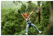 Experience Costa Rica's most popular adventure sport; the canopy zip line. Sail high above the rainforest canopy in this thrilling adventure. A spectacular river with dramatic waterfalls is the backdrop for these 21 platforms carefully built in the rainforest canopy. Traverse from tree to tree and platform to platform using pulleys on horizontal traverse cables. Complete with extremely high safety standards, bi-lingual guides and a delicious meal to follow. |